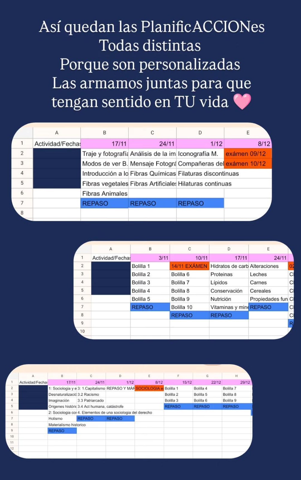 ✓ Y los bajamos a una planilla de planificación REALISTA Y ACCIONABLE, para que por fin rindas esas materias que tenés pendientes